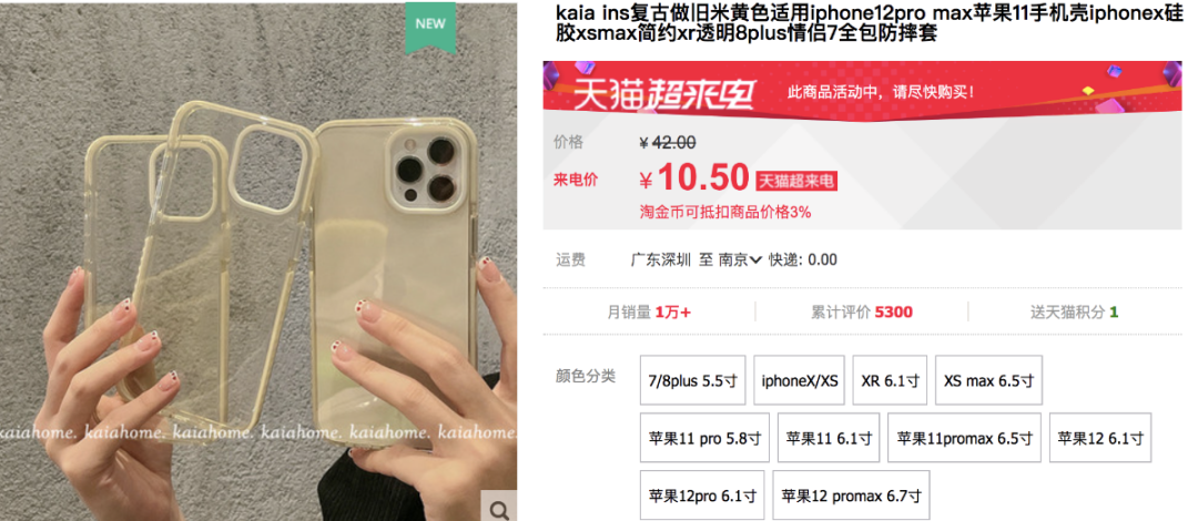 再比如上面这个粉色水蜜桃手机壳,这个模特穿的衣服就是粉色的,整个图片看起来就特别协调。