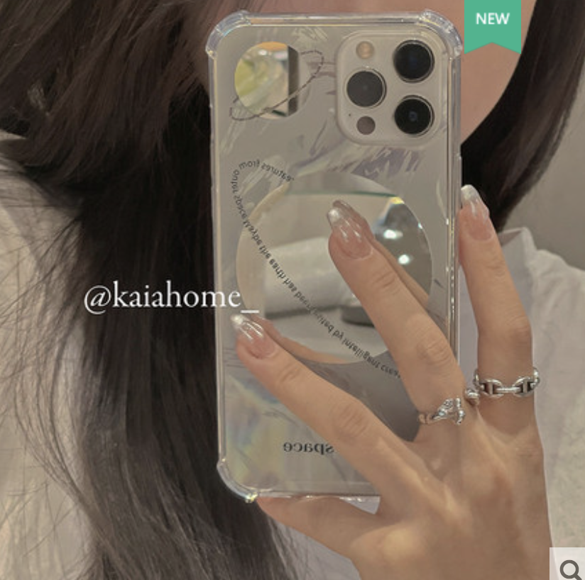 这个是不透明亮晶晶的手机壳,虽然背景也是暗色调,但注意女生手上戒指,指甲,甚至是背景里穿的衣服,都和这个手机壳元素特点,高度匹配,亮晶晶的。