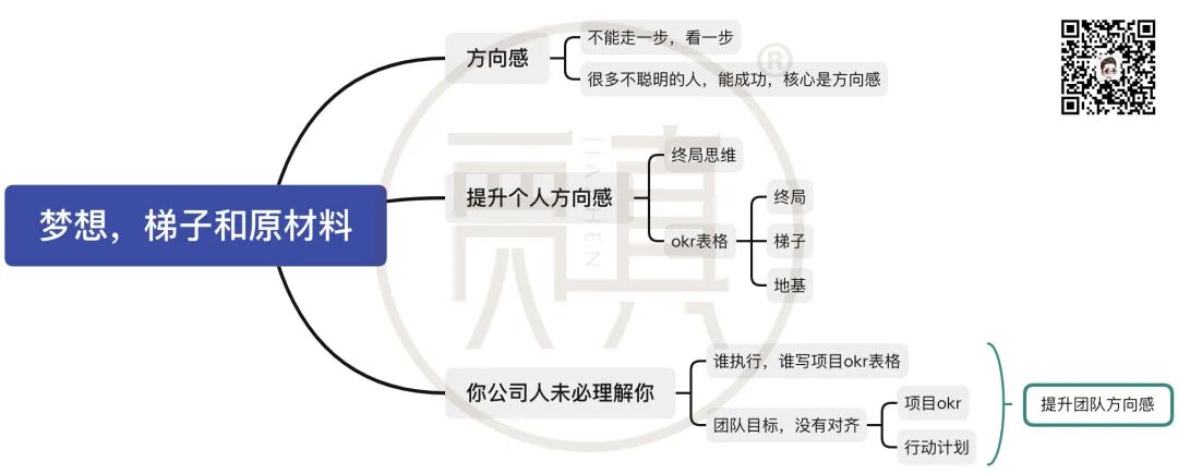 方法是用okr表格,先努力去看到每条路终局,再去找到梯子,让自己能爬上去,最后是回到现实,去找做梯子的原材料。