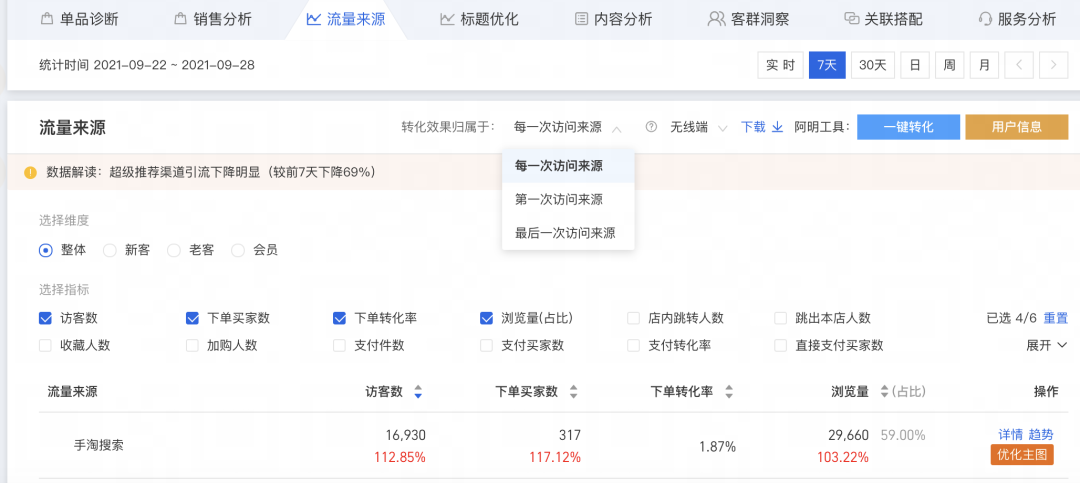 因为生意参谋的默认计算的成交,是归于每一次访问来源。