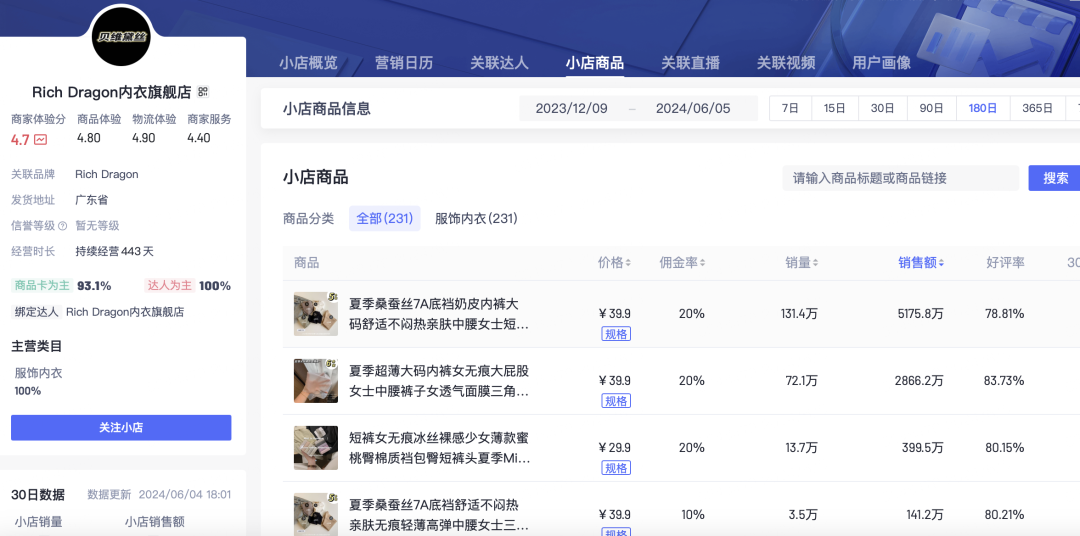 半年销售近亿元,单链接半年5000万,抖音店铺。