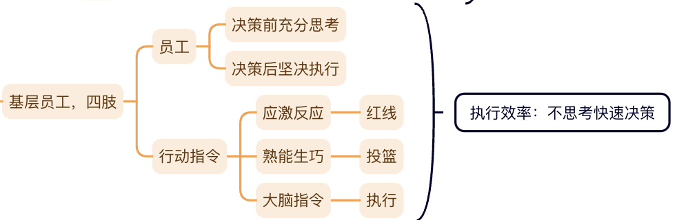 也就是说,对于基层员工的要求,就像我们对四肢的要求,给他们一个明确的指令,让他们各司其职,胳膊只有在一种情况下有决策权,应激反应。